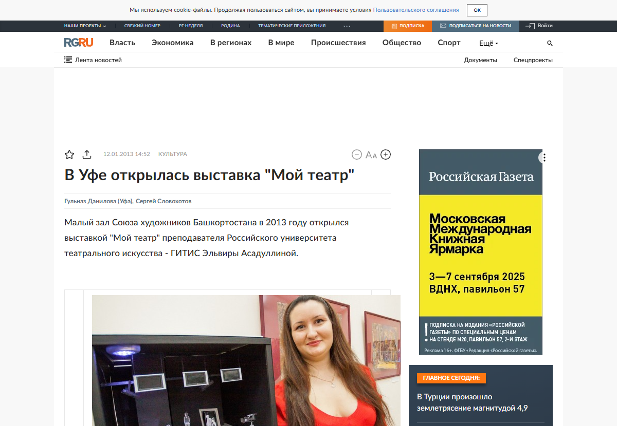 Выставка "Мой театр" преподавателя Российского университета театрального искусства - ГИТИС Эльвиры Асадуллиной